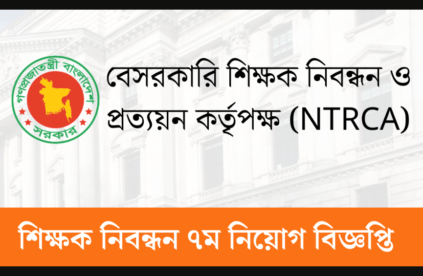 বেসরকারি শিক্ষক নিবন্ধন ও প্রত্যয়ন কর্তৃপক্ষ (এনটিআরসিএ)-এর ৭ম নিয়োগ বিজ্ঞপ্তি (বিশেষ) অনুযায়ী প্রার্থীদের আবেদনের নির্দেশনা প্রকাশ করা হয়েছে। এই নিয়োগের মাধ্যমে এমপিওভুক্ত শিক্ষাপ্রতিষ্ঠানসহ মোট ৬৭,২০৮টি শূন্যপদে শিক্ষক নিয়োগ দেওয়া হবে।